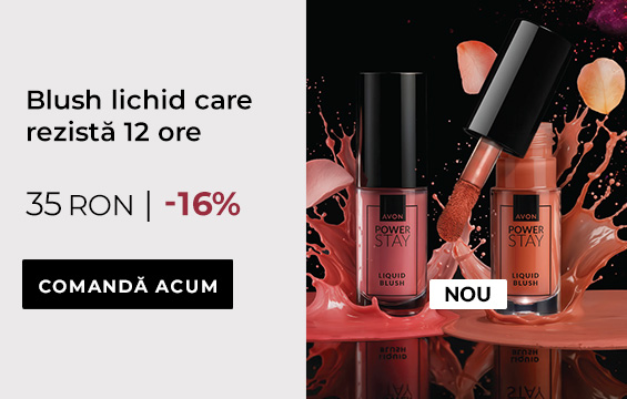 In campania 09 desfasurata in luna Septembrie 2025, poti achizitiona produsele recomandate de Irina Rimes : rujul Power Stay High Voltage Spark – 30% reducere, paleta de farduri Ultra – 42% reducere, apa de parfum Rare Onyx 50 ml – 37% reducere, exfoliant calcaie Foot Works – 43% reducere. Descopera toate produsele aflate in oferta in magazinul Avon!